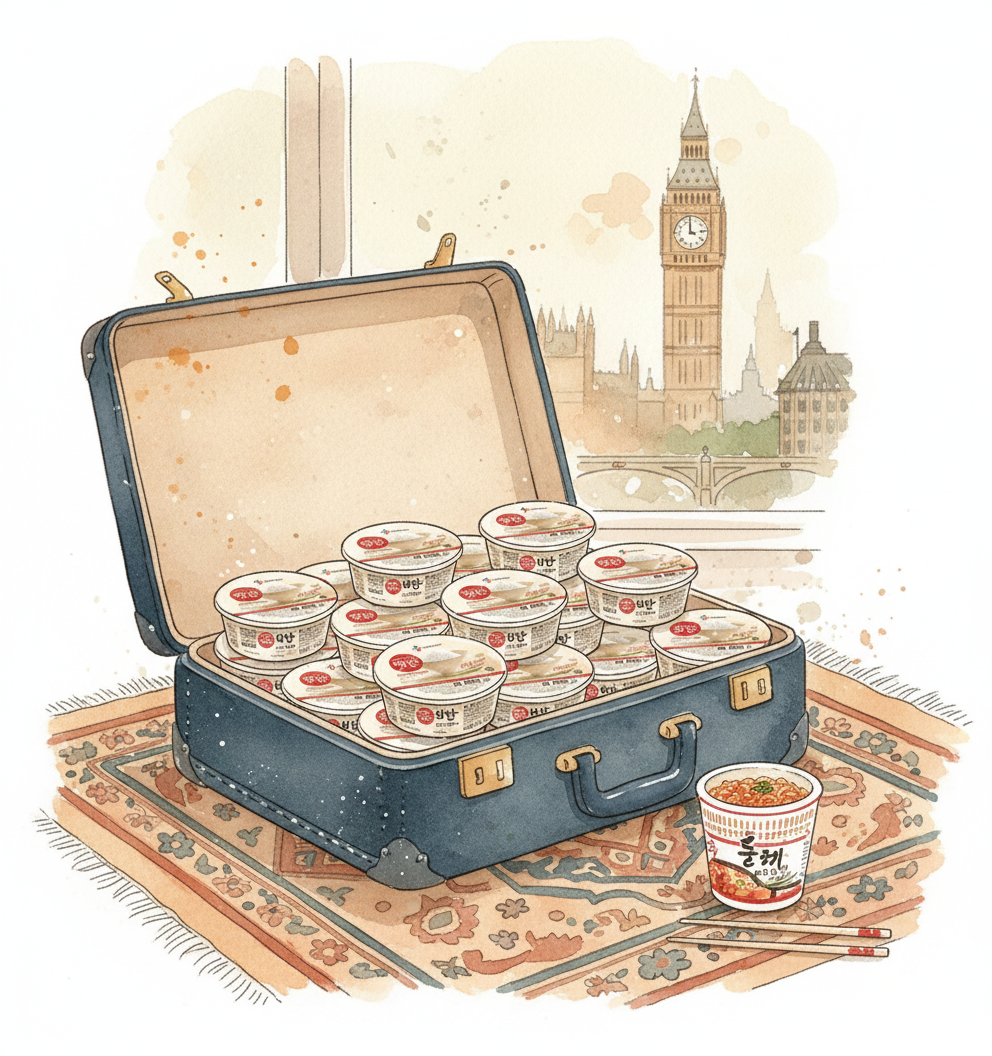 다시 시작된 아빠의 끈질긴 설득에 못 이겨 등 떠밀리듯 떠난, 소위 '무색무취'의 출발이었습니다. 요리 1도 못 하는 딸이 걱정되신 아빠는 이민 가방이 터져나갈 듯 햇반 30개를 꽉꽉 채워주셨습니다. 타지에서 딸자식 굶을까 봐 걱정된 눈물겨운 사랑이었죠. 하지만 영국에 도착한 첫날, 그 햇반 30개는 제게 사랑인 동시에 '무능의 증거'가 되었습니다. 20대 중반에도 저는 밥 한 끼 제 손으로 할 줄 모르는 '온실 속 화초'였거든요.