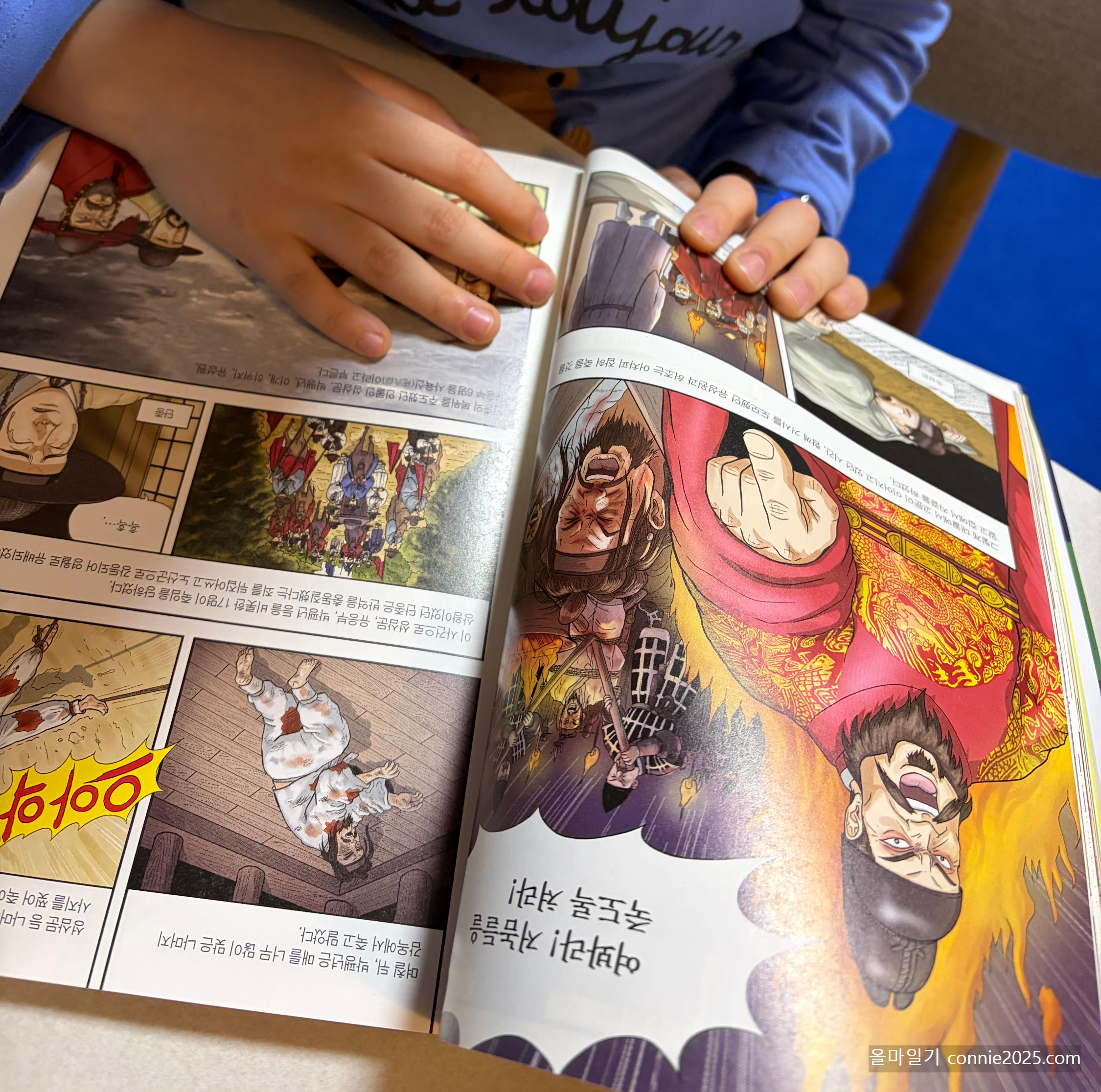 영화를 본 후 집으로 돌아와, 까롱이와 제일 좋아하는 역사 만화책 [박영규의 조선왕조실록]과 [박시백의 단종실록]을 함께 펼쳤을 때, 아이의 눈이 동그래졌습니다. 박영규 단종 편에는 사육신 처형 장면이 그대로 나와 있었거든요. "엄마! 이것 봐! 영화에서 나온 장면이 여기 그대로 있어!" 영화의 각본가가 이 책을 참고한 게 아닐까 싶을 정도로, 영화 속 장면들이 텍스트로 살아 움직이고 있었습니다. 방금 스크린에서 본 장면을 책에서 다시 발견했을 때의 그 짜릿함! 13살 까롱이에게 역사는 이제 '외워야 할 과거'가 아니라 '찾아내는 재미가 있는 숨은 그림 찾기'가 되었습니다.