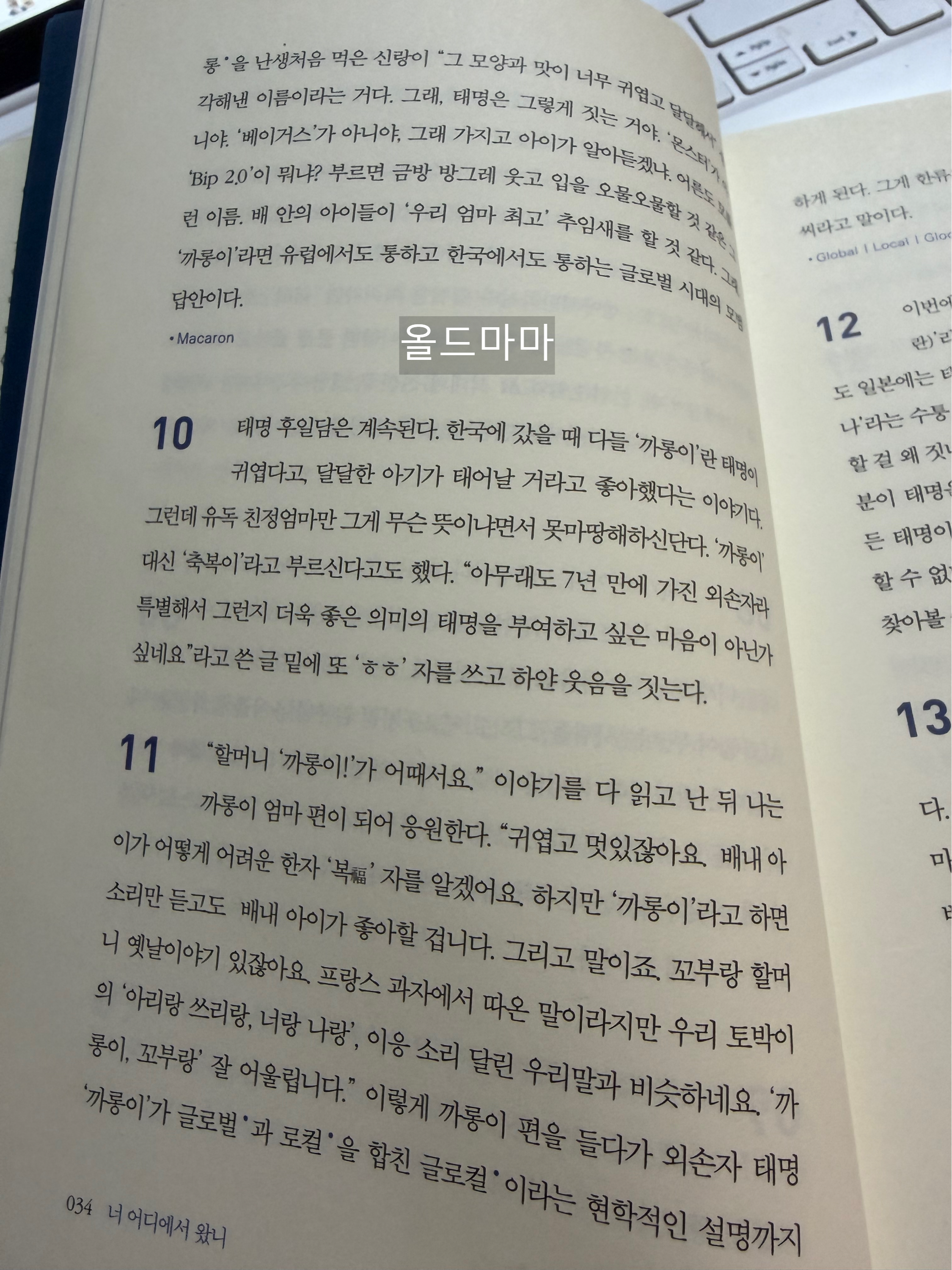 여기서 놀라운 인연 하나를 소개할까 합니다. 제가 영국 유학 시절 쓴 태명에 관한 글을 보시고 한 출판사에서 연락이 왔었습니다. 그 인연으로 故 이어령 교수님의 유작인 《한국인 이야기》에 저희 아이의 태명 에피소드가 실리게 되었죠. 제게는 가문의 영광 같은 일이었습니다.