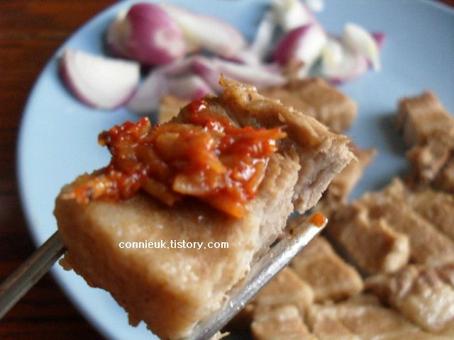 신랑이 만들어준 새우젓 양념장과 함께 먹는 돼지고기에요. 진짜 맛있었어요. ㅎㅎ