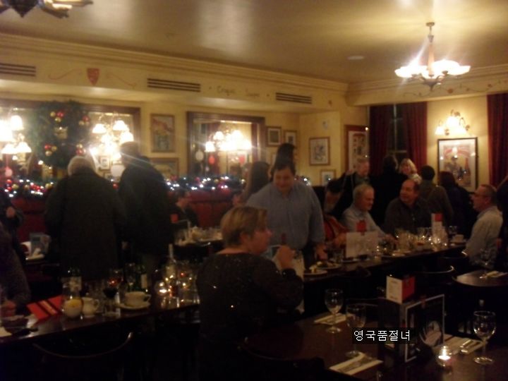 아무래도 영국 크리스마스는 온전히 가족과 함께 보내는 날이므로, 친구 및 직장 동료들과의 크리스마스 만찬은 다소 일찍 시작됩니다. 크리스마스 디너 예약은 이미 10월부터 시작되었고요, 보통 12월 10일 전후로 가장 많은 크리스마스 디너 파티가 이루어지는 것 같습니다. 그래서 요즘 저녁마다 대부분의 시내 레스토랑은 크리스마스 디너 파티를 하는 손님들로 가득 차기 때문에 내부가 꽤 시끄럽고 북적거립니다.