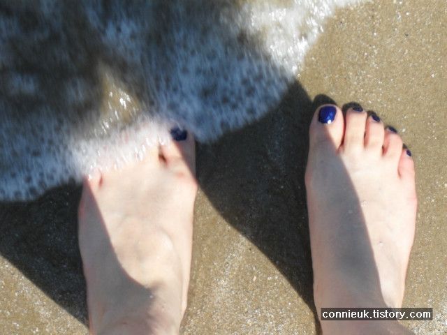 전 신발을 벗고 모래의 보드라운 기분을 느끼며 이리저리 걸어 다녔어요. 신랑이 물이 차갑지 않다고 하는 말에, 전 발이라도 담그자는 생각에 바다 속으로 점점 들어갔지요. 말만 담그는 데도 너무나 시원했어요.