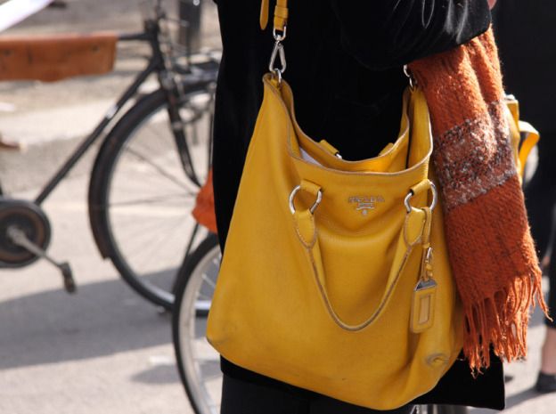 프라다 제품의 노란 색 숄더백이에요. 요즘 전 이런 종류의 가방이 좋더라고요. 뭐든지 다 넣어도 다 들어갈 만한 큰 빅백
