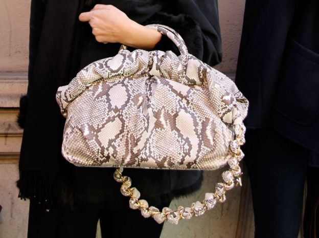 뱀피인가요? 진짜면 엄청 비쌀텐데요. 블랙 옷에 이거 하나 포인트로 들어주면 딱 좋을 만한 가방이에요.