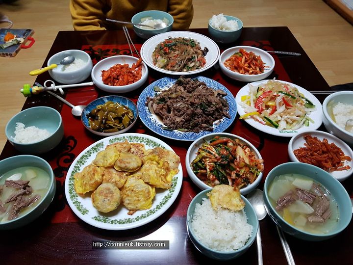 시댁에 도착하니 오후 2시경... 이미 시부모님들은 식사를 마치셨네요. 시어머니께서는 아들과 며느리 거기다가 손녀가 좋아하는 명절 음식들을 얼마나 많이 준비해 놓으셨는지... 어차피 며느리가 있어도 아이들 돌보느라 음식 장만에 전혀 도움이 안 되는 것을 아셨는지 이미 음식들을 다 장만해 놓으셨더라고요.