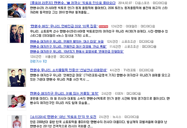국내 포탈 사이트에는 안현수 기사가 시시각각 올라오고 있습니다.