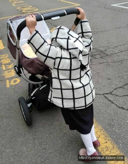동생 유모차 밀어주는 누나