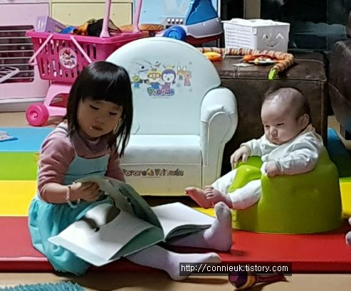 엄마는 한 명인데, 아이는 둘이다보니 갑자기 두 명이 손을 필요로 할 때에는 참 난감합니다. 특히 아기가 분유를 정신없이 먹고 있을 때, 첫째가 응가가 급하다며 부를 때가 있습니다. 저의 경우에는 정말 급한 일이 아닌 경우라면, 둘째보다는 첫째의 요구를 먼저 들어 줍니다. 아직 둘째는 모르니까요.