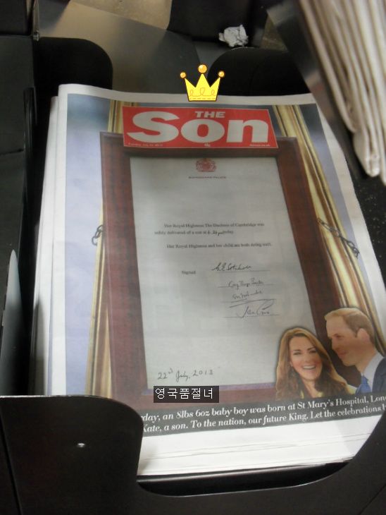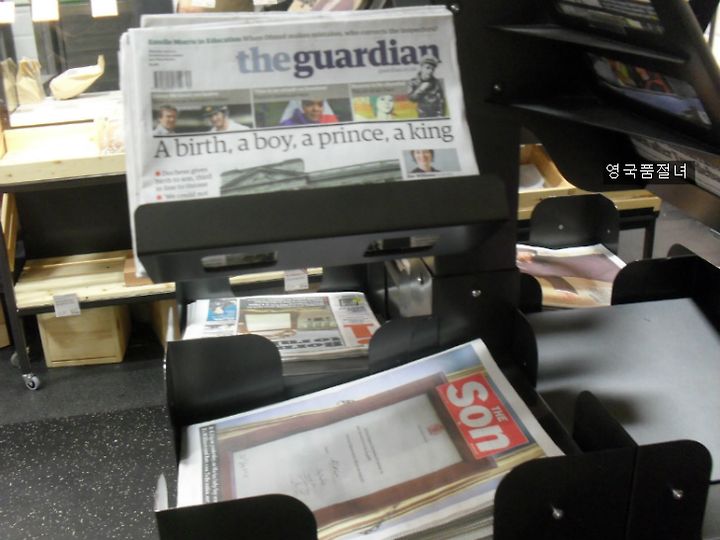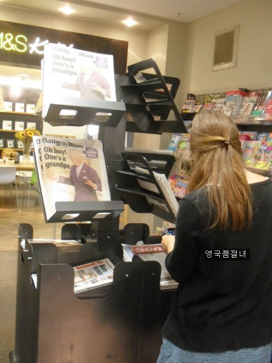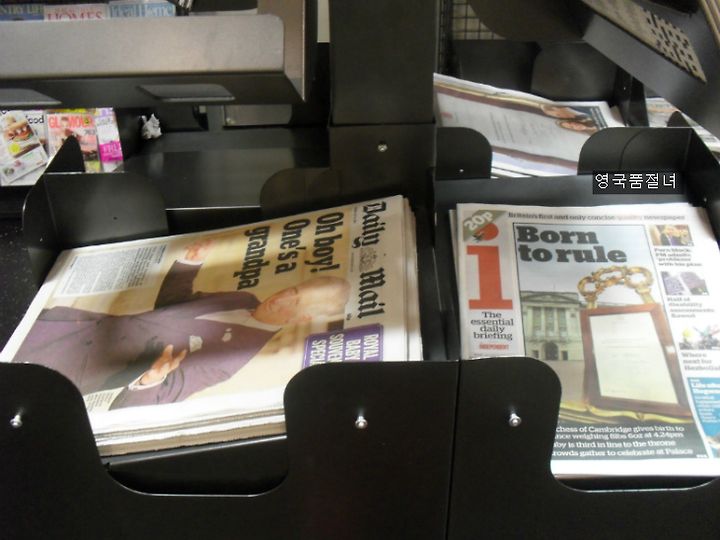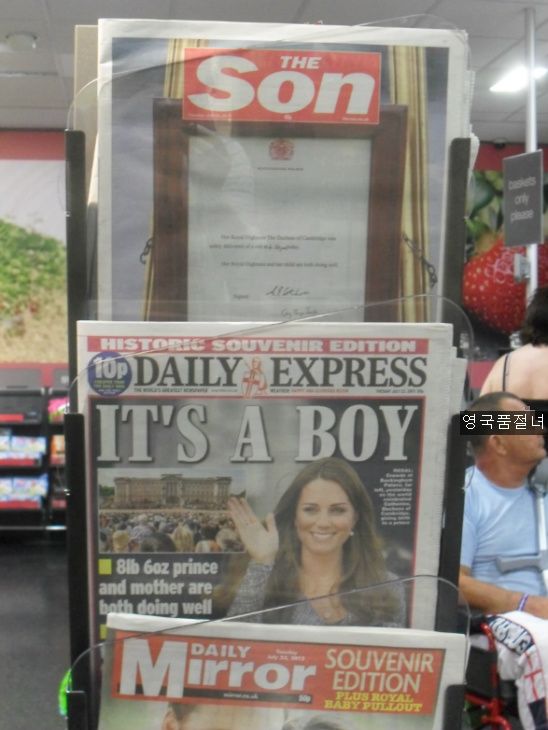 늦은 오후에 장을 보러 마트에 갔는데요, 신문 가판대 옆을 지나가는데 몇 명이 왕실 아기 신문 기사를 보고 있더라고요. 신문들을 보니 전부1면은 왕실 아기에 대한 사진과 기사 뿐이었어요.