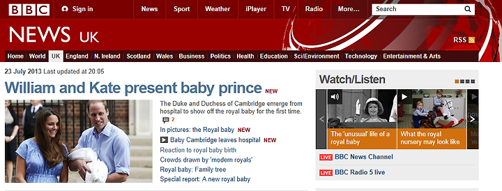 드디어 로얄 베이비 탄생 소식이 알려진 어제, 저는 재미있는(?) 일을 경험했습니다. 아침 일찍 아르바이트를 하러 학교에 왔습니다. 이미 영국 아줌마들은 왕실 아기에 대해 이야기 꽃을 피우고 계시더군요. 그런데 한 외국인 남학생 (영국 군인으로 6년간 근무) 이 이렇게 말하는 거에요.