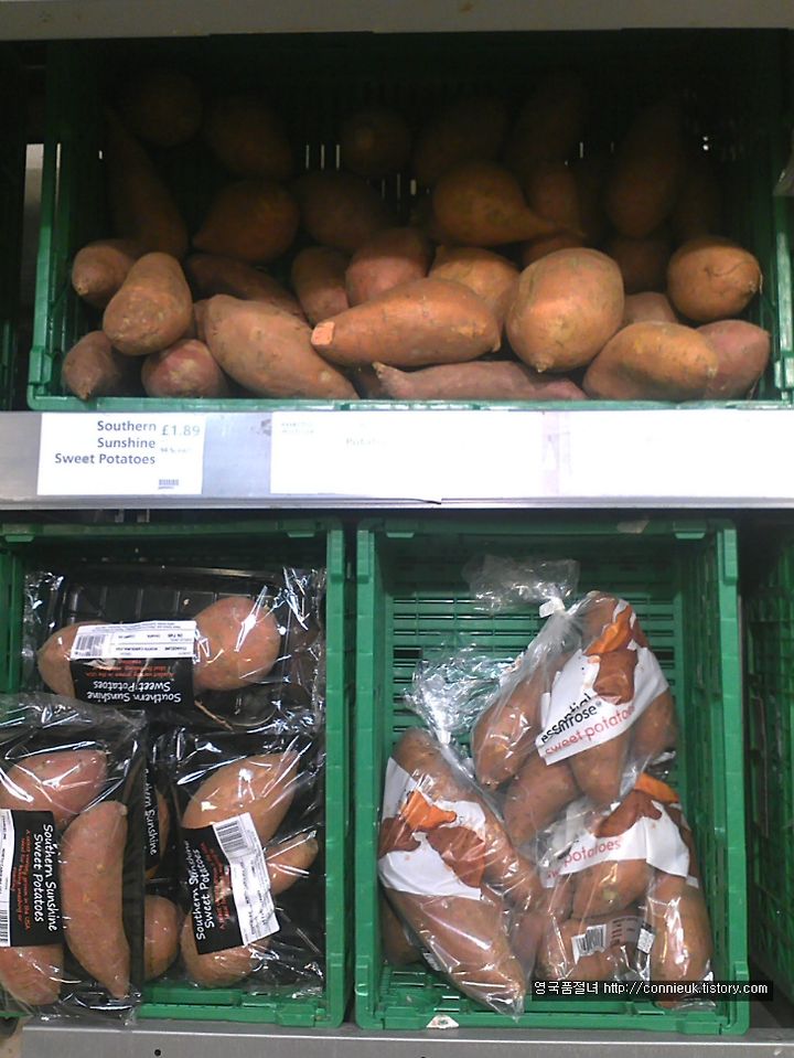 영국에는 "Sweet Potato" 라고 되어 있는 일명 고구마가 많이 팔기는 합니다.