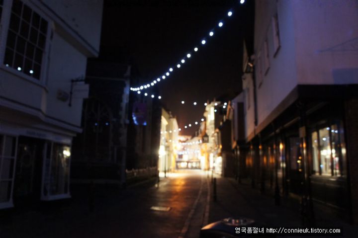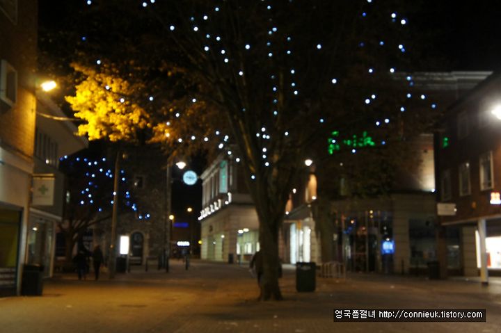 저녁 9시 쯤인데, 시내는 이처럼 아무도 없이 조용하고 적막한 유령 도시를 방불케 합니다. 다행히 반짝이는 크리스마스 불빛만이 화려하게 시내를 밝히고 있네요. 저희는 하이 스트리트로 발걸음을 옮겼습니다.