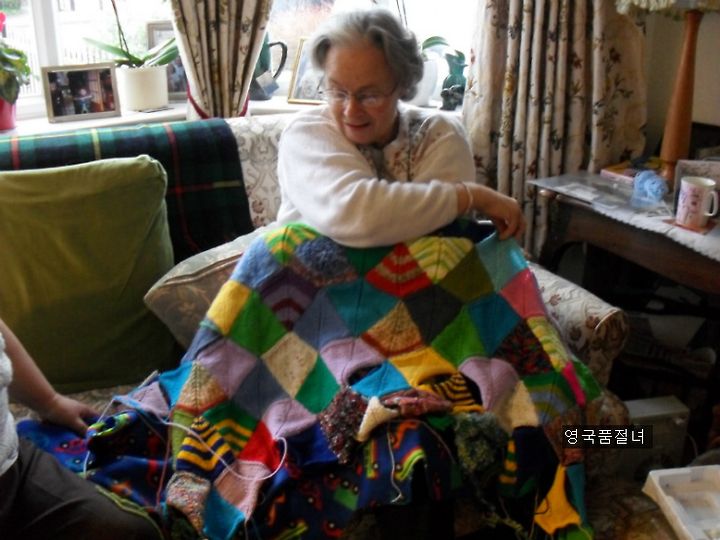 특히 영국 할머니가 손주 선물로 뜬 니트 이불을 보고 말이에요. 일부 영국 아줌마와 할머니들은 상대방을 바라보고 이야기를 하시면서, 뜨개질을 자유자재로 하시는데요, 일년 내내 뜨개질로 만든 작품들은 가족들의 크리스마스 혹은 출산 선물용이랍니다.