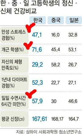 동양 학생들은 인내심이 강해 왠만한 고통은 다 참아내려고 애쓴다. 꼭 신체가 아닌 마음에 병이 난 것도 아픈 것인데, 그저 정신력으로 참아 내려고만 한다. 그러다가 결국 갑자기 학업을 중단해 버리기도 하고, 좋지 않은 일 등을 당하기도 한다.