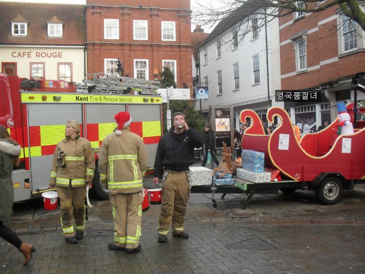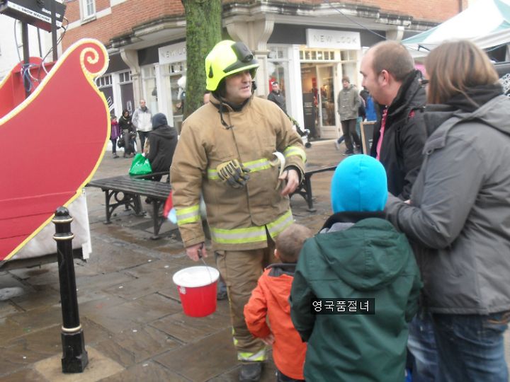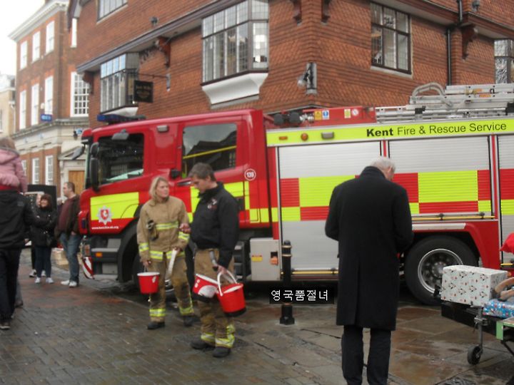 건너편에서는 소방관 아저씨들이 직접 나와서 자선 모금을 하고 있었어요.