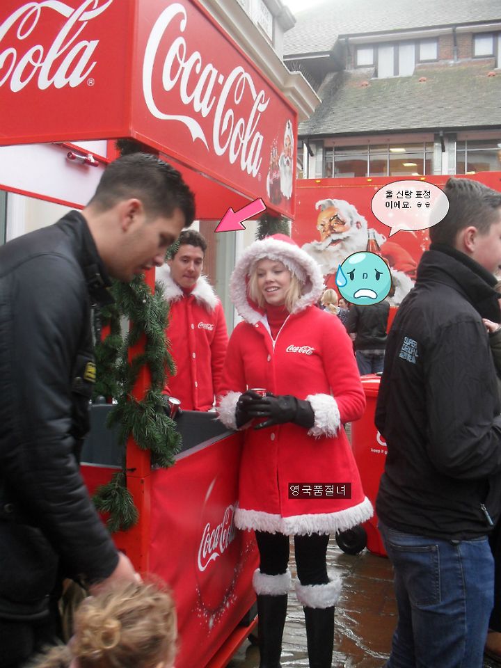 "저 산타 예쁘다. 콜라 받으러 가야지~~"