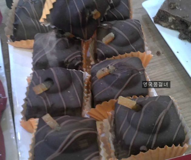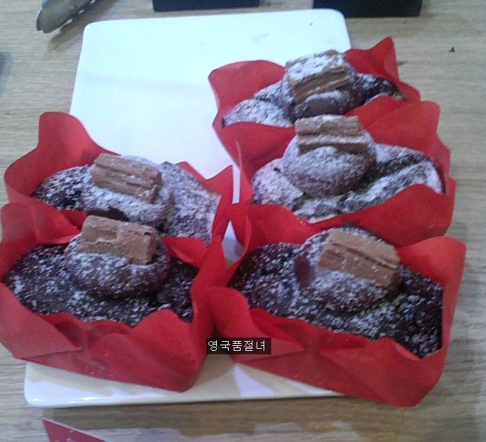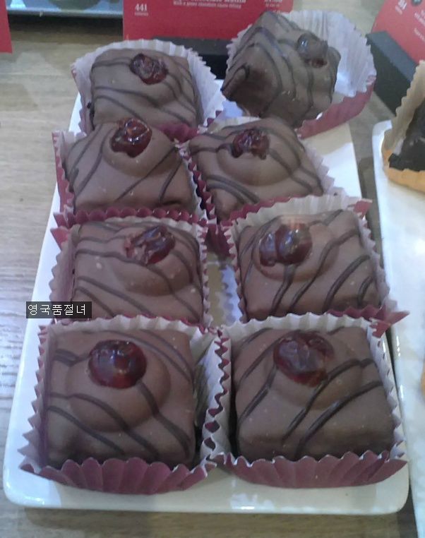 안에는 브라우니 맛이 나고요, 밖에는 초콜릿 크림이 덮혀 있는 것도 있으나
