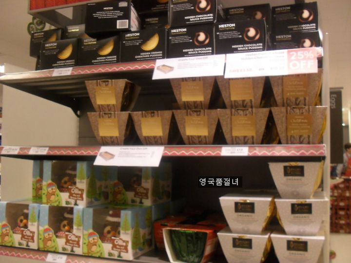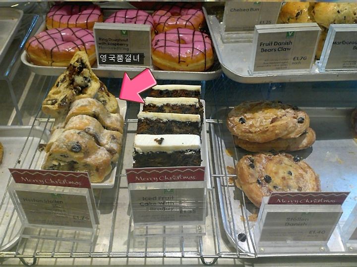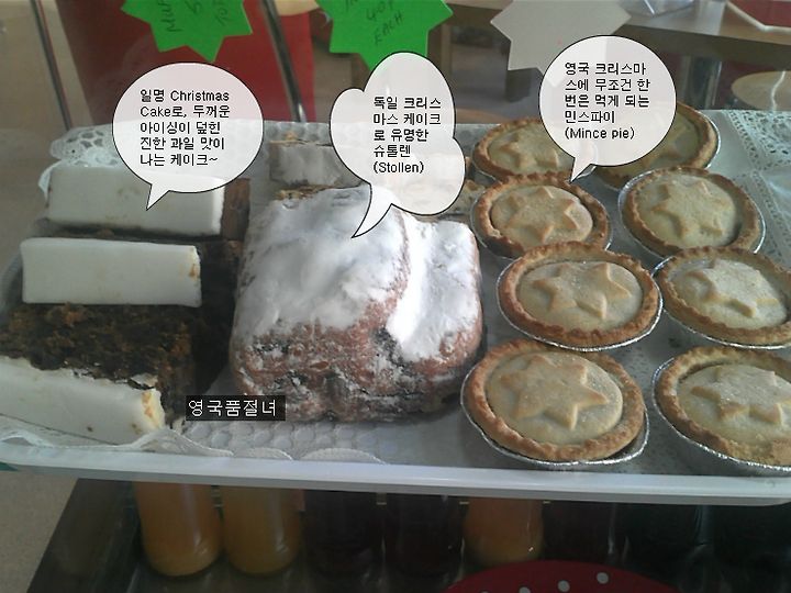 한국에서는 아주 가끔 먹었던 디저트들이 영국에는 이렇게 지천에 깔려 있으니, 날로 느는 것은 몸무게랍니다. 이제 영국인들은 약 2주간 고칼로리 크리스마스 음식과 극도로 달고 단 디저트에 푹~ 빠질 일만 남았는데요, 저도 크리스마스 기간에는 영국인의 명절 음식을 마음껏 즐겨 보려고 합니다. 국내에서는 결코 보지 못했던 영국 크리스마스 디저트들, 그저 보기만 해도 기분은 좋아지네요. ^^