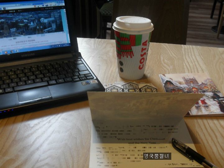 영국에서는 크리스마스에는 지인들끼리 크리스마스 카드를 주고 받습니다. 꼭 크리스마스가 아니더라도 주변 사람들의 안부 인사, 축하, 응원 등을 목적으로 수많은 카드를 보내는 것이 영국인들의 일상이라고 볼 수 있겠습니다. 저도 한국에 있었을 때에는 카드는 거의 부모님 생신 혹은 어버이날에만 쓸 정도였지만요, 영국에 와서는 주변 사람들의 생일과 크리스마스에는 꼭 축하 카드를 보내고 있습니다.
