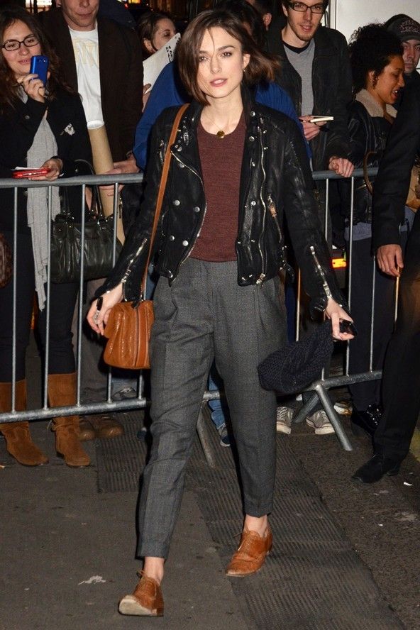 키이라 나이틀리는 가죽 재킷 매니아~