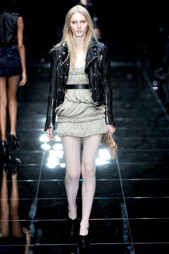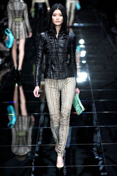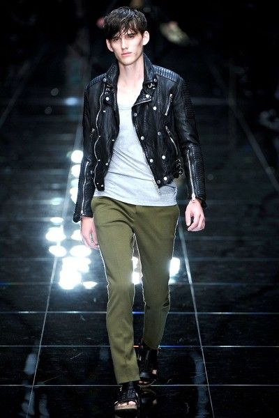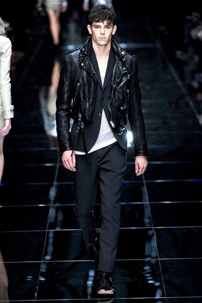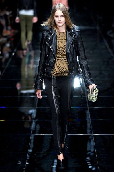 밀란 패션 위크에서도 가죽 재킷 바람은 불었답니다.