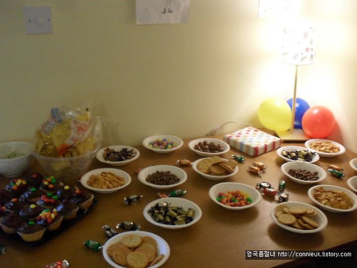 오늘 파티 호스트인 남자 친구는 여자 친구 생일 파티 음식 메뉴를 선정하고, 직접 친구들의 도움을 받아 다양한 음식들을 함께 준비했다고 합니다. 테이블에는 간단한 음료와 가볍게 먹을 수 있는 다과가 놓여 있었어요. 그날 저희 부부는 처음 본 사람들과 소개를 하면서 인사를 나눴습니다.