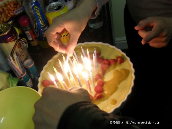 생일 파티에 초대 받은 저희들은 맛있는 음식과 와인, 맥주를 먹고 마시면서 즐거운 시간을 보냈습니다. 음식을 다 먹은 후에 가장 중요한 생일 축하 순서가 있었습니다.