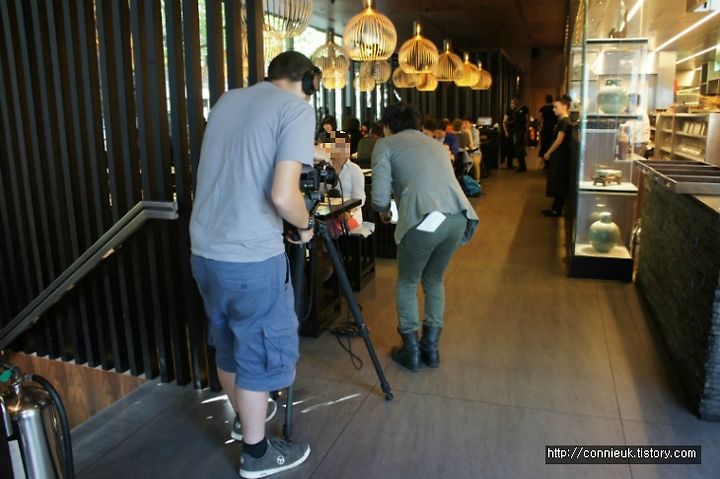 제가 갔을 때는 12시 조금 넘은 시간이었으므로, 한국, 중국인들이 제법 많았습니다. 그런데 제가 음식을 거의 다 먹었을 때쯤 1시 이후부터는 거의 80% 이상이 현지인 & 외국인들인 거에요. 영국인 단체 손님들이 제법 많았고요. 제가 방문했을 때에는 외국 방송사에서 김치 레스토랑을 취재하는 모습도 보였답니다.
