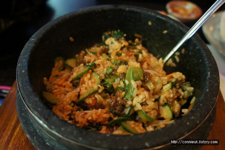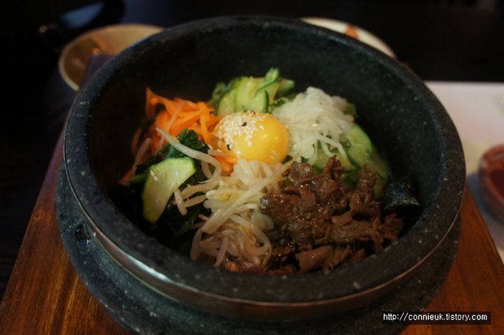 고추장 팍팍 넣어서 정신없이 비볐답니다. 너무 기대했던 탓에 제 입맛에 아주 맛있지는 않았어요. 참기름이 좀 더 첨가되었으면 괜찮았을 것 같아요. 그냥 먹을 만 한 정도.. 물론 양은 정말 많더라고요. 가격도 8.20 파운드 (약 만사천원 정도) 로 괜찮지요.