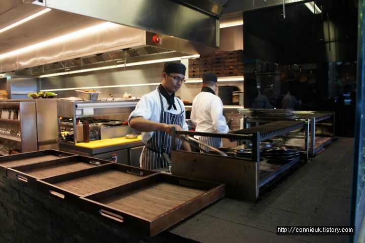 이제까지 제가 가 본 영국의 한식 레스토랑 (음식점) 하고는 사뭇 달랐어요. 특이했던 점은 종업원이 다 현지인이라는 겁니다. 즉, 다양한 국적 출신의 외국인들이에요. 또한 주방에서 일하는 사람들 역시 한국인들이 있었지만, 외국인들도 고르게 분포되어 있었지요. 대부분 런던의 한식 음식점들은 거의 한국인 어학 및 유학생들을 채용해서 쓰거든요.