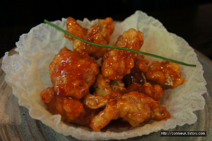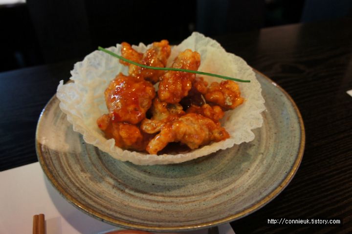 보기에 장식이 참 마음에 들었어요. 양도 많은 편이고, 맵고 달콤한 양념이 묻은 순살 닭 튀김이 맛있었어요. 자주 먹었던 중국 음식인 Sweet & Sour chicken 만 먹다가 이것을 먹으니 정말 기분 좋더군요.