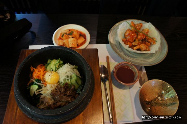 주변 한국 학생들이 말하는 것처럼, 한국인이 보기에 김치 레스토랑은 외국인들에게 각 종 모임을 할 때 추천해 줄 만한 한식 음식점으로는 단연 최고인 것 같아요. 왜냐하면 이 곳은 고급스러운 분위기와 음식들이 깔끔하게 잘 나오는 것 같거든요. 보통 런던에 있는 한식 음식점들은 분위기 좋은 레스토랑보다는 밥집 혹은 분식집에 가까운 곳들이 대부분이거든요.