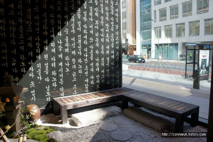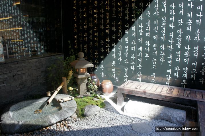저도 호기심이 생겨 지난 주 런던에 갔을 때 점심 식사를 하기 위해 김치 레스토랑에 갔습니다. 위치부터 찾기 쉽게 홀번 시내 한복판에 자리잡고 있었어요. 그리고 레스토랑 안의 내부가 밖에서도 훤히 보이는 깔끔하고 무엇보다도 한국적인 인테리어가 참 마음에 들었습니다. 지나가는 현지인들도 안을 자꾸 볼 정도로 뭔가 눈길을 끄는 분위기였지요.