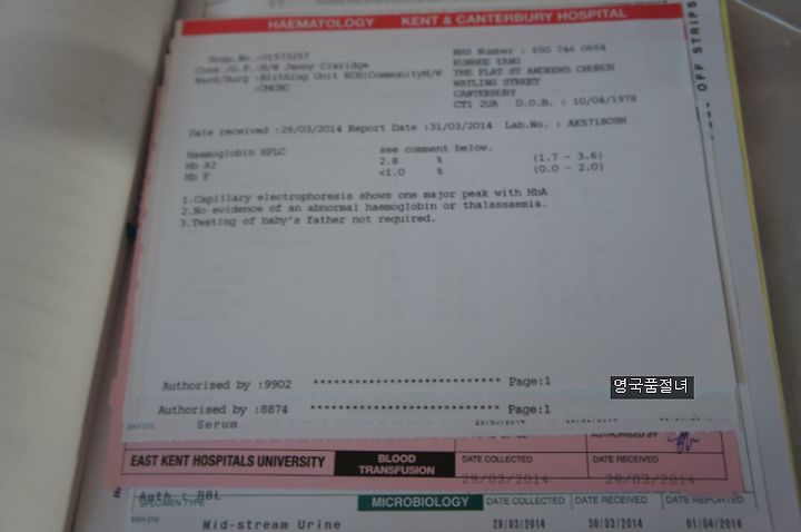 영국은 산전 검사 결과지도 다 첨부되어 있습니다.