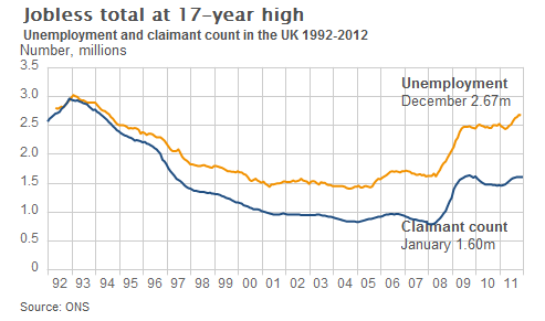영국 실업률에 대해 해석이 분분한 그래프지만, 실업률은 상승 중이에요. (출처: bbc.co.uk)