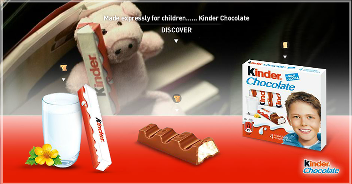 킨더 초콜릿은 이탈리아 제과 전문업체 페레로 그룹의 제품으로, 60년 전통을 자랑하며 "엄마들의 요구에 의해 창조" 되었다는데 큰 의미를 부여할 수 있습니다. 소중한 자녀들에게 오로지 양질의 재료만을 첨가하여 달고 맛이 있는 적당양의 간식으로 초콜릿을 주고 싶은 엄마들의 열망으로 만들어졌다고 합니다. 따라서 킨더 초콜릿은 아이들을 위해 만들어진 최고급 매일 간식이며, 먹는 순간 아이들이 큰 행복을 느낄 수 있도록 하는데 큰 초점을 맞추고 있다고 합니다.