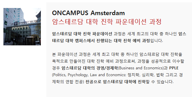 – 암스테르담 대학 진학 개별 컨설팅