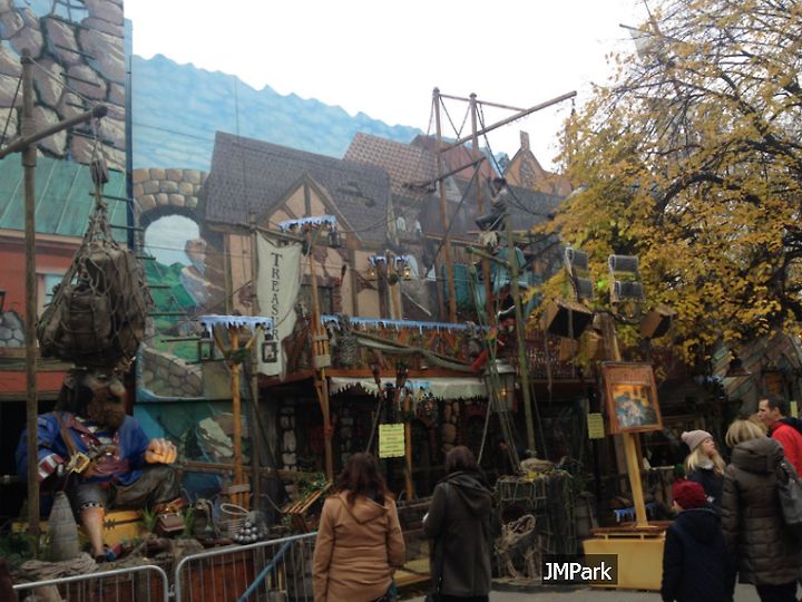 유럽식 크리스마스 마켓은 통나무집이 나란히 들어서 있습니다.