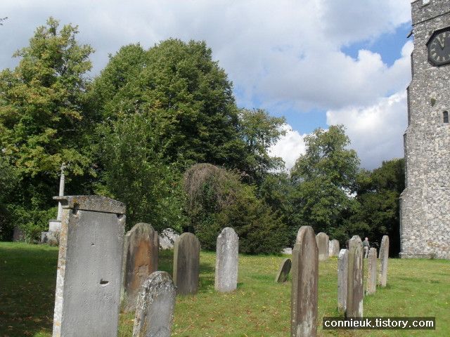 교회 주변에는 여느 오래된 영국 교회에서 볼 수 있는 많은 비석들이 보입니다.