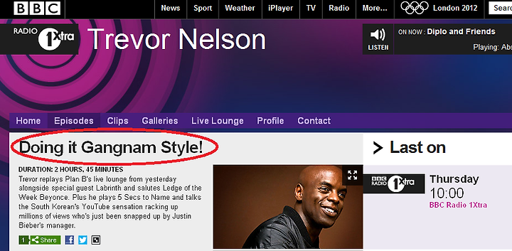 DJ. Trevor Nelson : Doing it Gangnam style (두번에 걸쳐 꽤 길게 소개했습니다.)