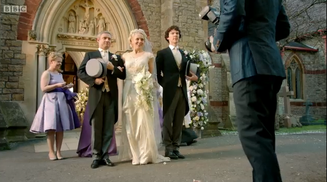 또한 등장인물의 깨알같은 재미도 선사하고 있어요. 실제 지난 편에서는 셜록의 부모님으로 등장한 분들이 실제 컴버배치의 부모님이셨어요. 또한 존 왓슨 역의 마틴 프리먼의 상대역으로 나온 아만다 애빙턴도 실제 함께 살고 있는 배우자(partner)라고 하네요. 결혼한 상태(married)는 아니지만, 둘 다 결혼식 장면을 즐겁게 찍었다고 합니다. 그래서 그런지 둘이서 키스하고 서로를 바라보는 장면이 더욱 진심으로 느껴지는 것 같아서 좋더라고요. ㅎㅎ