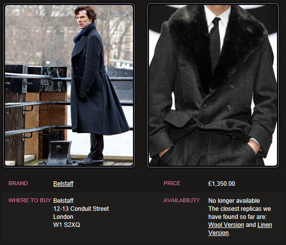 Belstaff 영국 고급 브랜드로, 현재 셜록 코트는 더 이상 판매되지 않는다고 합니다.