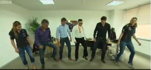 BBC F1 팀은 일요일 경기 시작에 앞서, 미리 싸이를 만나 강남 스타일 말춤을 전수받기로 했습니다.