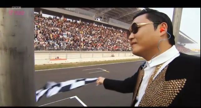 BBC three에서는 F1 결승전 경기와 함께, 싸이에게 직접 강남 스타일 말춤을 배운 장면이 방송으로 나왔습니다. F1 배경 음악도 역시 싸이의 강남 스타일이었답니다. ㅎㅎ
